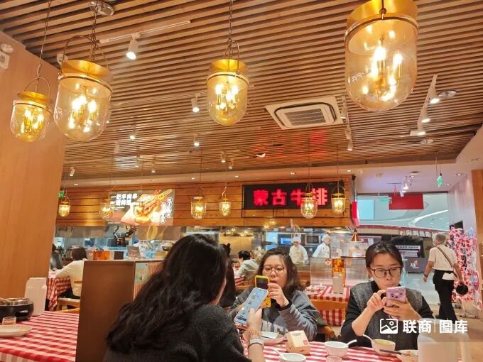 午間12:00-13:00的用餐高峰時(shí)段,在聯(lián)商網(wǎng)走訪的西貝北京大興龍湖天街店內(nèi),雖然是工作日,等位區(qū)已有顧客有序等候。店內(nèi)上座率穩(wěn)定在90%左右,其中以年輕客群為主,也有不少老年人。
