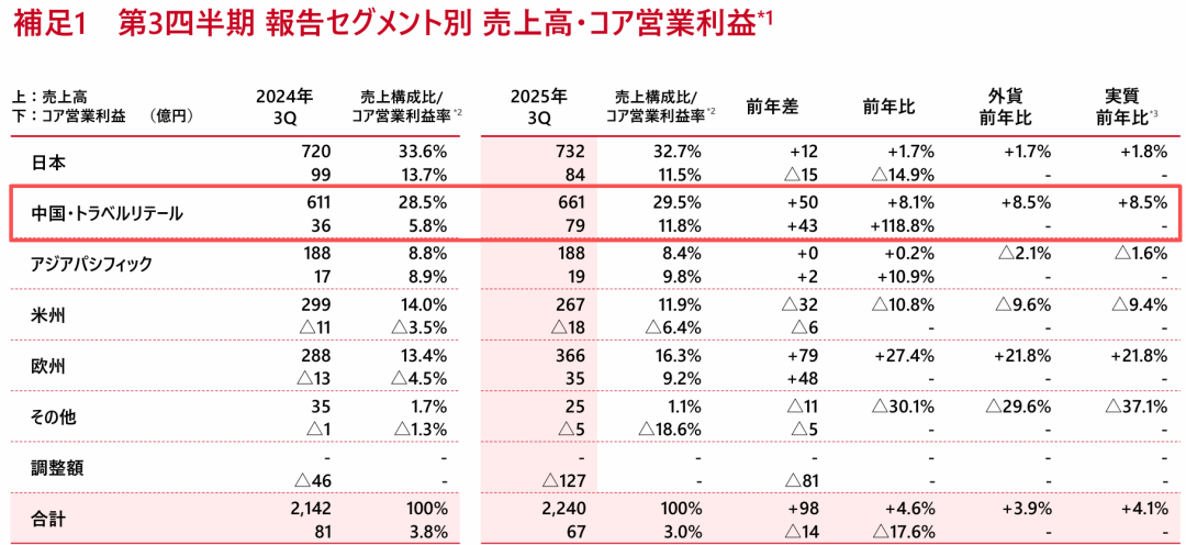聚焦中國及旅游零售市場來看,資生堂集團(tuán)在財報中指出,盡管受商業(yè)信心惡化導(dǎo)致消費(fèi)下滑持續(xù)影響,前三季度仍為負(fù)增長,但第三季度銷售額轉(zhuǎn)為增長,為8.1%。