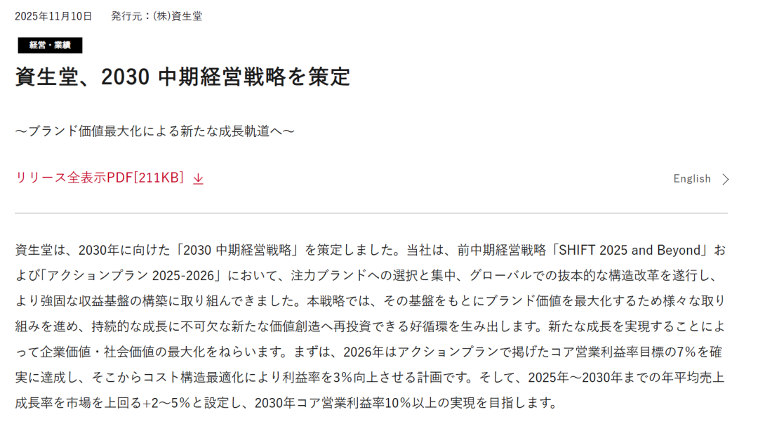 值得注意的是,在發(fā)布財報的同一時間,資生堂集團(tuán)還同步公布了2030中期戰(zhàn)略,以及執(zhí)行官、高級職員、美洲區(qū)域領(lǐng)導(dǎo)制度與董事制度。
