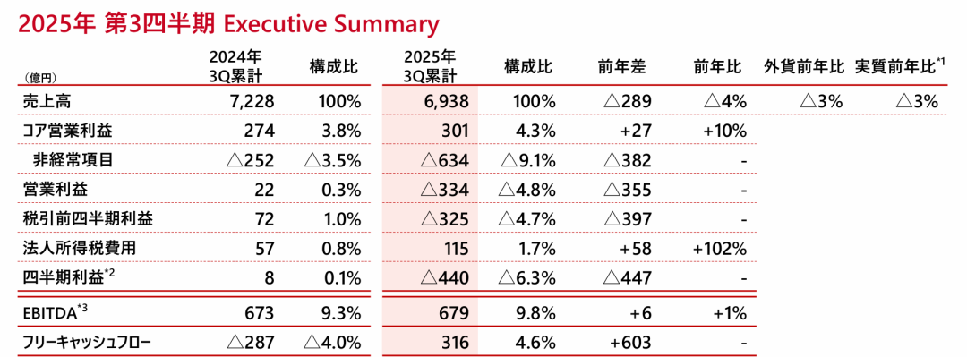 財報顯示,2025年前三季度,資生堂集團(tuán)凈銷售額為6938.17億日元(約合人民幣320.61億元),同比下跌4.0%;核心營業(yè)利潤為300.80億日元(約合人民幣13.90億元),同比增長9.7%;營業(yè)利潤虧損333.50億日元(約合人民幣15.41億元),同比暴跌1627.71%。