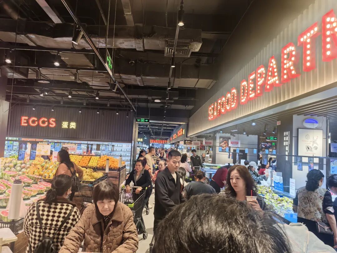 11月初,一個工作日的下午,《零售圈》再次探訪了這家門店,雖然沒有開業(yè)時的排隊現(xiàn)象,但人潮涌動的賣場,不像一個工作日的超市。(本文海量實拍圖片,耐心閱讀)