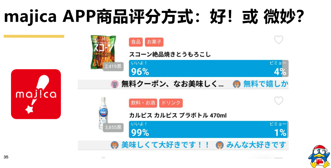 4、復購與擴散:majica會員綁定用戶,“好/微妙”評價體系推動商品迭代,Donpen吉祥物、BGM等IP化內(nèi)容強化品牌記憶;