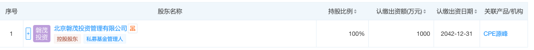 據(jù)財(cái)聯(lián)社等媒體報(bào)道,CPE源峰的前身是中信產(chǎn)業(yè)基金。天眼查顯示,CPE源峰關(guān)聯(lián)機(jī)構(gòu)為北京磐茂投資管理有限公司(下稱“北京磐茂”)。根據(jù)中國(guó)證券投資基金業(yè)協(xié)會(huì)信息,北京磐茂的首席執(zhí)行官為劉樂飛,法定代表人、總經(jīng)理、董事總經(jīng)理、執(zhí)行董事為田宇,首席財(cái)務(wù)官為聶磊。