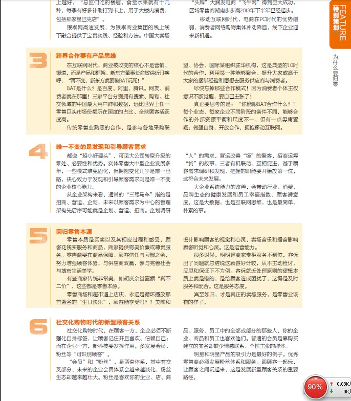 【上篇】 為什么要?dú)w零? 想想現(xiàn)在的零售業(yè)形勢(shì) 2014年中國(guó)零售業(yè)發(fā)展六大趨勢(shì) 文/聯(lián)商網(wǎng)特約評(píng)論員 林尚玉 2013年可能是中國(guó)零售最壞的時(shí)期,“很多人”覺得實(shí)體零售業(yè)不行了,輿論看衰,業(yè)界鼓舞或反思,電商兇猛,這是“壞時(shí)期”,如果不為顧客深化改革,這個(gè)行業(yè)就要進(jìn)入壞時(shí)代了——關(guān)店、并購(gòu)潮將在三年內(nèi)來臨,2014年會(huì)讓傳統(tǒng)零售人更焦灼、失落。 一部分企業(yè)擁抱互聯(lián)網(wǎng),變革創(chuàng)新,如銀泰商業(yè)、蘇寧云商,2013年的改革幾乎是以往七八年改革力度總和,為2014年及未來五年取得持續(xù)發(fā)展的基礎(chǔ)和領(lǐng)先優(yōu)勢(shì),這就是“好時(shí)期”,如果有更多這樣的企業(yè),實(shí)體零售業(yè)會(huì)更健康,好時(shí)代不遠(yuǎn)。 中國(guó)零售業(yè)2014年發(fā)展趨勢(shì)包括六大重點(diǎn):消費(fèi)者不需要更多百貨店,零售商發(fā)展泛渠道是唯一出路;電商業(yè)高增長(zhǎng)、高投入下難掩疲態(tài);跨界合作要有產(chǎn)品思維;唯一不變的是發(fā)現(xiàn)和引導(dǎo)顧客需求;回歸零售本源;社交化購(gòu)物時(shí)代的新型顧客關(guān)系。 一、消費(fèi)者不需要更多百貨店 消費(fèi)者只為購(gòu)物去某家百貨商場(chǎng)的動(dòng)力越來越少,再加上品牌雷同和海外代購(gòu)、網(wǎng)購(gòu)分流、停車難等問題,百貨業(yè)經(jīng)受考驗(yàn)。一個(gè)城市,讓大量顧客習(xí)慣來店的商場(chǎng)屈指可數(shù),那樣的店有時(shí)需要昔日故事和情感沉淀。 未來的百貨業(yè),就是在黃金地段做精致商品與服務(wù),或者成為購(gòu)物中心主力店。擁有娛樂、餐飲業(yè)種優(yōu)勢(shì)的體驗(yàn)式大型購(gòu)物中心是實(shí)體商場(chǎng)發(fā)展趨勢(shì)。百貨連鎖業(yè)要轉(zhuǎn)型升級(jí),大數(shù)據(jù)驅(qū)動(dòng)下的泛渠道發(fā)展是首選策略,其中購(gòu)物中心是重要布局。企業(yè)泛渠道發(fā)展,把020作為重要手段,以消費(fèi)者需求為導(dǎo)向,讓企業(yè)無所不在。 一家有實(shí)力、遠(yuǎn)見的百貨連鎖企業(yè),應(yīng)該持續(xù)優(yōu)化百貨門店、大力發(fā)展購(gòu)物中心、積極建設(shè)電商平臺(tái),以及在微信、天貓、APP、京東等渠道擁有不同形式的存在和溫度。 二、電商業(yè)高增長(zhǎng)、高投入下難掩疲態(tài) 據(jù)保守估計(jì),目前中國(guó)電商平臺(tái)每獲取一名新用戶的平均成本接近100元,這樣的高投入被行業(yè)高增長(zhǎng)繁華所掩蓋。 天貓、京東、凡客等電商平臺(tái)的高投入、高增長(zhǎng),同時(shí)正在遇到類似實(shí)體零售業(yè)巔峰時(shí)困惑和瓶頸:電商份額持續(xù)做大,消費(fèi)者更加挑剔,與供應(yīng)商的和諧程度或定價(jià)權(quán)遭受挑戰(zhàn),稅收等規(guī)范化壓力收緊,移動(dòng)互聯(lián)網(wǎng)重塑格局;而實(shí)體零售企業(yè)做電商,即使破釜沉舟如蘇寧易購(gòu),標(biāo)新立異如銀泰網(wǎng),也仍在摸索中。 阿里把淘寶拆分為淘寶、天貓等不同事業(yè)群后,其價(jià)值和基因在演變重塑,典型如雙11是天貓主打的電商業(yè)狂歡,而淘寶做雙12拓展消費(fèi)者權(quán)利。阿里某童鞋私下開過嚴(yán)肅玩笑,“天貓的‘品牌’有時(shí)還不如淘寶集市”。 騰訊電商等待微信,京東大建物流,一號(hào)店由沃爾瑪控股……2014年,電商平臺(tái)格局繼續(xù)演變,將逐步清晰。 傳統(tǒng)零售商進(jìn)軍電商,蘇寧云商做蘇寧易購(gòu)已是中國(guó)電器零售業(yè)最有魄力的公司了,管理體系嚴(yán)密是其傳統(tǒng)優(yōu)勢(shì),但與純粹互聯(lián)網(wǎng)公司不同。一家跟易購(gòu)合作的公司透露,易購(gòu)的辦公區(qū)之間區(qū)隔和等級(jí)森嚴(yán),她花了八個(gè)月才從一樓的食堂吃到八樓,越往上越好,“總監(jiān)們吃的樓層,食堂水果就有十幾種,每季有好多補(bǔ)助打到卡上,用于大樓內(nèi)消費(fèi),包括那家星巴克店”。 銀泰網(wǎng)高速發(fā)展,為銀泰商業(yè)集團(tuán)的線上線下融合提供了寶貴實(shí)踐、經(jīng)驗(yàn)和方法,仍在摸索。王府井百貨近日或收縮電商布局,萬達(dá)集團(tuán)高調(diào)做電商招聘,遲遲未落地,中國(guó)大賣場(chǎng)“頭牌”大潤(rùn)發(fā)電商“飛牛網(wǎng)”即將推出,區(qū)域優(yōu)秀零售商湖南步步高2013年下半年起步。 必經(jīng)之路。移動(dòng)互聯(lián)網(wǎng)時(shí)代,電商在PC時(shí)代的優(yōu)勢(shì)削弱,消費(fèi)者網(wǎng)絡(luò)購(gòu)物集體沖動(dòng)降溫,線下企業(yè)迎來新機(jī)遇。 三、跨界合作要有產(chǎn)品思維 在互聯(lián)網(wǎng)時(shí)代,商業(yè)被改變的核心不是營(yíng)銷、渠道,而是產(chǎn)品和框架。新東方董事長(zhǎng)俞敏洪近日疾呼,“再不變,新東方就要被BAT玩死!” BAT是什么?是百度、阿里、騰訊。網(wǎng)友、消費(fèi)者就在那里!三家平臺(tái)分別擁有搜索、購(gòu)物、社交領(lǐng)域的中國(guó)最大用戶群和數(shù)據(jù),遠(yuǎn)比世界上任一零售巨頭市場(chǎng)份額所在國(guó)度的占比、全球顧客活躍度高。 傳統(tǒng)零售業(yè)熟悉的合作,是參與各地采購(gòu)聯(lián)盟、協(xié)會(huì)、國(guó)際某組織駐華機(jī)構(gòu),