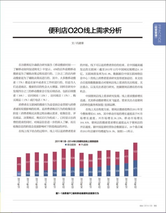 在谷歌和尼爾森聯(lián)合研究報告《移動搜索時刻——了解移動如何促進轉(zhuǎn)化》中顯示,45%的店外前期移動搜索是為了輔助決策過程而進行的,三分之二的店內(nèi)移動搜索是為了輔助決策而進行的。其中,大多數(shù)移動搜索(77%)都是在家中或者在工作時進行的,但是當(dāng)人們走進商店,搜索的目的性會大大增強。同樣在研究中發(fā)現(xiàn)四分之三的移動搜索會引發(fā)后續(xù)活動,包括后續(xù)搜索(36%)、訪問網(wǎng)站(25%)、訪問商店(17%)、購買商品(17%)或打電話(7%)。 消費者在互聯(lián)網(wǎng)的搜索行為是受到企業(yè)營銷與消費者感知雙重影響的結(jié)果,是消費者購買行為的收集信息階段(消費者購買決策過程由確認需求、收集信息、評估商品、決策購買、購買后行為組成),已經(jīng)顯示出消費的需求的同時,對商品信息進一步的深入了解,而且收集信息的階段會直接影響對下階段商品的評估。 在線上線下結(jié)合的過程中,線上可以是消費者需求的開始,線下可以是消費者供給的結(jié)束。在中國越來越發(fā)達的互聯(lián)網(wǎng)(截至2013年12月中國網(wǎng)民規(guī)模達6.18億,互聯(lián)網(wǎng)普及率為45.8%,數(shù)據(jù)源自中國互聯(lián)網(wǎng)絡(luò)信息中心)的線上消費者需求研究變得更加迫切。本文結(jié)合百度指數(shù)數(shù)據(jù)重點對便利店線上需求的關(guān)注程度、關(guān)注重點,以及關(guān)注者進行研究,挖掘便利店潛在的市場機會。 中國便利店線上需求研究發(fā)現(xiàn):線上需求搜索增長迅速,尤其移動搜索增長突飛猛進,需求關(guān)注點是便利店的特色服務(wù)和加盟/連鎖品牌。 在線上關(guān)注程度方面,便利店搜索趨勢自2011年至今整體增長61.66%,其中移動市場的增長速度高于PC市場增長速度,PC市場增長36.23%,移動市場增長164.81%。便利店的搜索需求增長速度遠大于便利店的開店速度,據(jù)中國連鎖經(jīng)營協(xié)會數(shù)據(jù)顯示,26個重點城市2013年店鋪平均增速為19.5%。