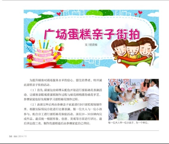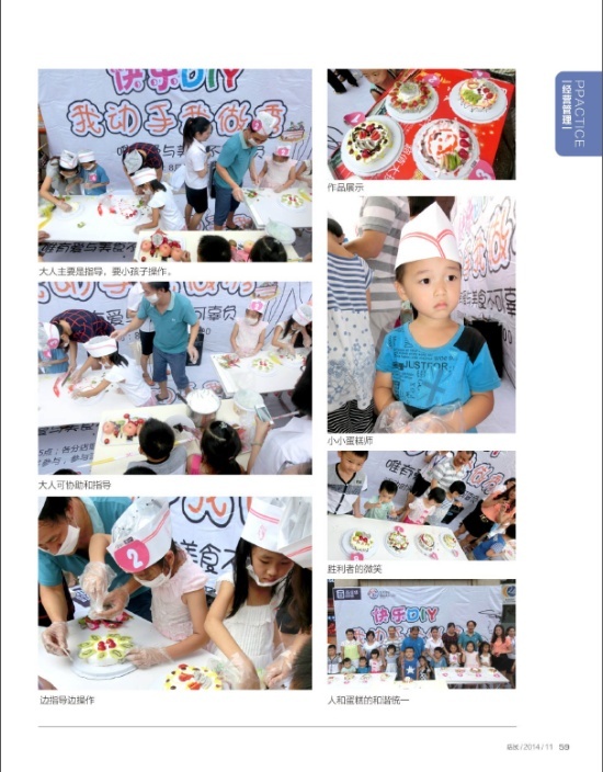 為提升顧客對商場服務水平的信心,留住消費者,特開展此蛋糕親子街拍活動。 (1)首先,請面包房師傅從配色開始進行蛋糕裱花表演活動,讓顧客親眼觀看蛋糕制作過程與裱花師精湛的裱花手藝,參賽家庭也好先觀摩學習蛋糕裱花制作過程。 (2)表演完畢后再由參賽親子家庭進行DIY蛋糕現(xiàn)場制作秀,根據(jù)實際情況分批進行比賽表演,限一位大人與一位小孩參與,配合分工進行蛋糕裱花體驗活動,須在20~30分鐘內(nèi)完成作品,最后統(tǒng)一根據(jù)形象、創(chuàng)意、美觀等方面進行評比。最后評出前三名,制作的蛋糕最后由參賽家庭自己帶回。 每一位大人帶一位小孩子,為一個單位。 大人主要是指導,要小孩子操作。 大人可協(xié)助和指導 邊指導邊操作 作品展示 作品展示 小小蛋糕師 勝利者的微笑