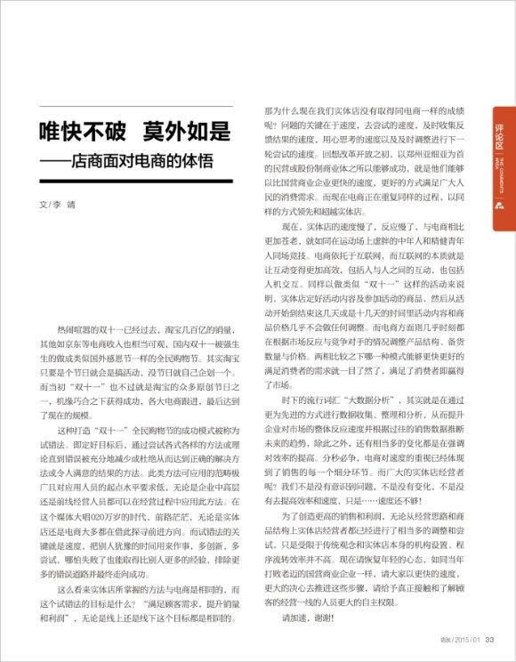 | 唯快不破 莫外如是——店商面對(duì)電商的體悟 | ||||||