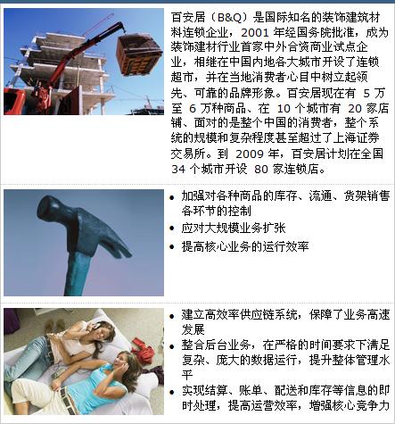 這個項目將可以在即時性和效率等方面大大提升百安居現(xiàn)有的業(yè)務(wù)能力,并可以支持百安居整個中國所有賣場以及未來將要開設(shè)的店鋪。