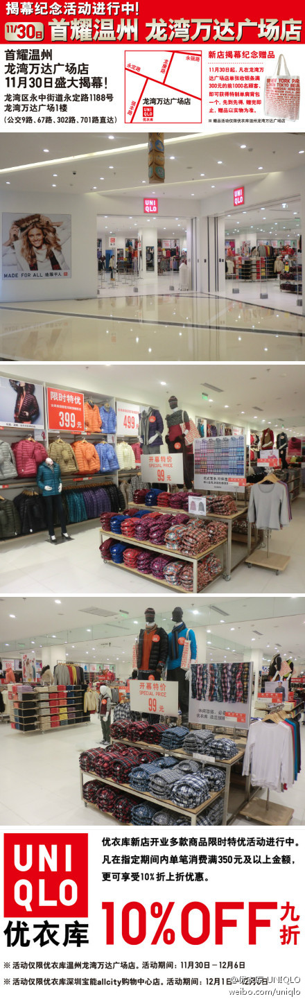 優(yōu)衣庫溫州首店龍灣萬達(dá)廣場店明日開業(yè)
