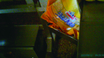 在工廠的車間里,隨處可以發(fā)現(xiàn)監(jiān)控鏡頭。9月16日晚近11點(diǎn),記者背對(duì)其他工人對(duì)包裝機(jī)上的包裝袋進(jìn)行拍攝時(shí),被身后的監(jiān)控錄像發(fā)現(xiàn)。