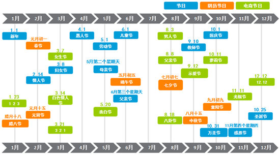線上及線下零售商創(chuàng)造了許多新的節(jié)日,從而釋放了購物者的購買欲望。