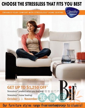 為了搶得圣誕節(jié)假日購(gòu)物的先機(jī),BiF推出了“重磅優(yōu)惠”促銷(xiāo),截至11月21日之前,消費(fèi)者選購(gòu)Stressless系列商品最高可節(jié)省1250美元。