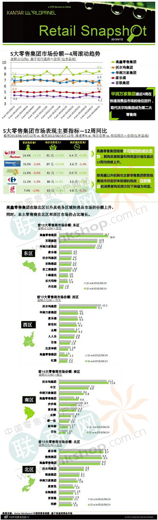 華潤萬家集團最近4周在快速消費品市場的地位回升,取代沃爾瑪集團成為第二大零售商。
