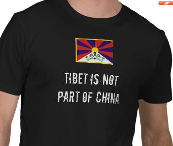 黑色T恤的英文:Tibet IS NOT PART OF CHINA (西藏不是中國的一部分)
