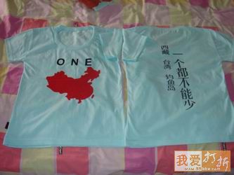 海外網(wǎng)站正熱銷的T恤,不同的顏色和款式但主題明確的被分為兩種,很多海外留學(xué)生、華人更是穿著“西藏、臺灣、釣魚島一個都不能少!”上課、工作。